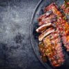 Cooked Pork Loin Ribs slightly basted in our famous basting sauce and vacuumed, ready to hit the grill for the final cooking session. Yes, it falls of the bone like we are know for. You can freeze be for future use.